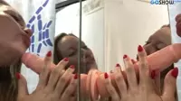As the camera pans in on a sultry scene filled with steamy passion and an overtly sensual atmosphere, JP, our charismatic protagonist, starts filming his latest XXX video, this time, incorporating an enticing water play element to his adult fantasy.The sizzling heat of their desires culminate under the shower, where they can no longer control their insatiable need for one another.The passionate duo indulges in a slow dance, teasing each other with tender kisses and nibbling on sensitive spots.With every touch and caress, their excitement grows, reaching fever pitch as JP drops to his knees, preparing for what's about to come.He takes her breast in hand, wrapping his lips around the taut nipple while sliding his other hand down the front of her underwear, his fingers gliding through the damp folds of her sex.As he gently massages the throbbing bundle of nerves with his fingers, she writhes under his touch, whimpering at the exquisite torment.With an almost animalistic growl, JP replaces his hand with a thick, veiny dildo, eager to drive her closer towards climax.He proceeds to tongue-fuck her pussy, lapping and sucking at the swollen clit, bringing her to a series of intense orgasms under the shower spray.Her breathing heavy, she gasps, I need more, and JP obliges, sliding the dildo deep into her welcoming entrance.With the water cascading over their bodies, they continue to explore every inch of each other with an insatiable hunger for pleasure.As JP takes the dildo in hand and starts thrusting it in and out, the sensations intensify and she becomes wetter by the moment, creating a puddle at the base of the shower.With his hand slipping between their bodies, he adds an extra layer of friction, heightening her pleasure as JP pretends to use his other hand for an imaginary blowjob in this fantasy scene.The shower's water drips down and mixes with the trickling droplets of sweat and precum, creating a perfect blend that covers their bodies, making their skin glisten and feel electrified.As he fucks her harder and faster with the dildo, the sounds of water mingles with heavy breathing and moans of pleasure, painting a vivid picture of carnal desire and passion.The sight and sensation is almost surreal, an orgiastic dance under the shower that pushes them to the brink of ecstasy, over and over again.After countless moments of intense play, JP can no longer deny his own desires.He positions her against a tiled wall, and with water spraying down upon their flushed skin, he slips into her wet folds, pounding her from behind.Their climactic release echoes throughout the steamy bathroom as they succumb to the wild abandon of uninhibited lust in the warm embrace of the shower.