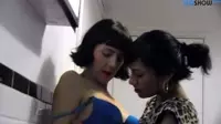 As the camera pans in close, the sounds of soft moaning fill the air as a beautiful brunette girl with sultry eyes and plump lips stands under the bathroom sink, fully nude, her eyes closed and mouth slightly open.Her long hair cascades down over her back, framing her perfectly-shaped figure in an alluring lingerie set that accentuates every curve.Suddenly, another brunette girl approaches, a look of pure desire on her face as she presses against the first woman, running her hands up and down the length of her body, sending shivers down her spine.Her heart starts to race in anticipation for what's to come.They exchange a passionate, lust-filled glance as they share a soft, lingering kiss.The girls start their seductive play with gentle caresses and teasing touches.Their hands slide over each other's smooth skin, sending goosebumps up the spines of both women.The anticipation is palpable, with a mutual sense of desire building in the air.They both smile at one another, sharing a knowing understanding of what they plan to do.In unison, they reach for their favorite toys, which are dripping wet with passion and yearning.Their hands begin to stroke the hard, pulsating flesh as they lean into each other, kissing and breathing heavily in the erotically charged atmosphere.The water from the sink splashes on their skin, adding to their excitement.As the play intensifies, moans of pleasure fill the bathroom, echoing off the ceramic walls as they both indulge themselves in a moment of unbridled ecstasy.Their fingertips glide along their bodies in a practiced rhythm, fingers sinking into wet flesh and finding that sweet spot time after time.The girls explore every inch of one another, delving deep into the throes of passion with tongues exploring the wet folds of each other's nether regions.The sounds of wet slurping noises mix with gasps of pleasure, punctuating the room with erotic undertones that could be heard across the city.Their juices mix and meld on their fingers and tongues as they indulge in this wild fantasy playground of sensuality.As their passion reaches its crescendo, they share a final kiss, both brunette beauties lost in their own world of pleasure and desire.The room fills with the scent of arousal as the camera captures every glistening drop, leaving viewers to indulge themselves in this fantastical tale of sensuality and satisfaction.